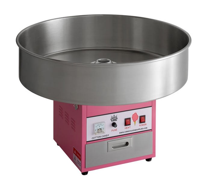 Cotton candy machine without supplies included. This machine brings a new level of fun to concession stands and party events. With the power of a motor, this cotton candy maker works by spinning sugar at a high temperature creating sweet threads of fluffiness.